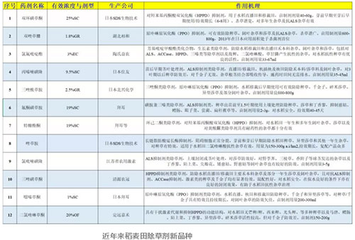 近年来,为研发出安全、高效的新除草剂品种,国内外农化企业都在不断努力创新,研制出很多创制性药剂和新剂型。“目前关注度最高的除草剂就是光合作用抑制剂(HPPD、PPO),新开发的除草剂剂型主要有片剂?泡腾片、缓释剂、微囊产品、多元混剂。”江苏省农药检定所药政科科长钱忠海介绍,其中,片剂?泡腾片针对水稻田中有水的特定环境,直接投入水田,使用方便、易计量,每亩5-7片,且无粉尘飞扬,环境污染小,成本较可湿性粉剂稍高,药效与可湿性粉剂相当;缓释剂可以降低环境因素所导致的农药降解和漂移,减少释放到环境中的农药量,延长药效期、减少施药量和施药次数。另外,二元混剂占水稻田除草剂的72%。